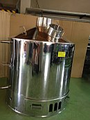 v-60cm, š-80cm, dno debelo 5mm, ložište ispod lonca visine 30cm gdje će biti plinski plamenik snage 20-ak Kw, otvor za montažu dimovodne cijevi, dva otvora ¾“ sa mufama, poklopac konusni visine 20cm s otvorom i nastavkom za spajanje cijevi za otparivanje, ventili